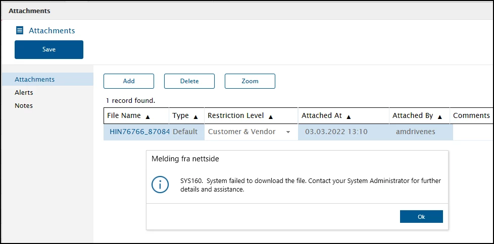 We have an issue where a user is trying to open a file attached to a contract, and get the following error: