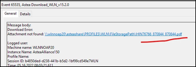 In the event log I see that the file name looks a bit funky (the name is HIN76766_870844.pdf)