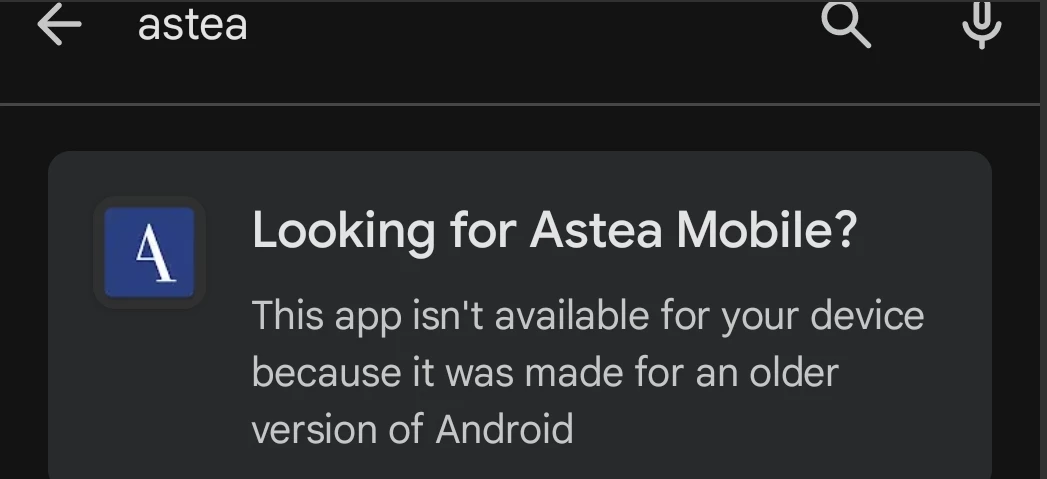 Users are not able to install Astea Mobile application on Android version 14.