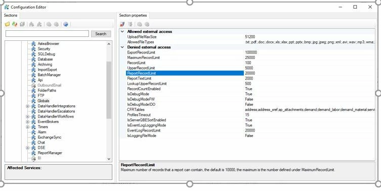 You can change the retrieve limit of your reports display from the configuration editor on the server. The reports retrieve limit is controlledby ReportRecordLimit and MaximumRecordLimit parameters.