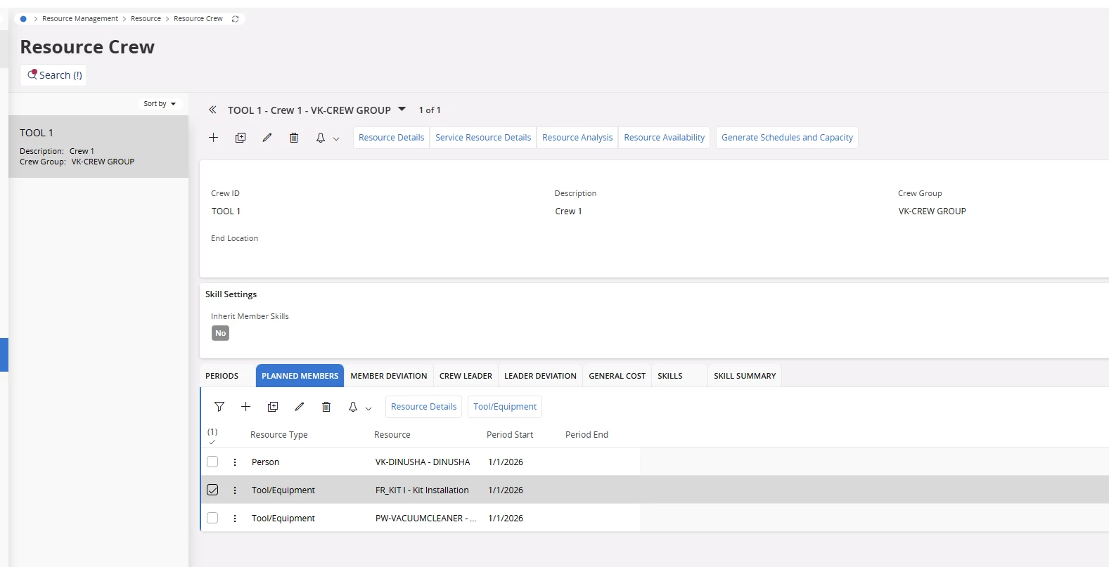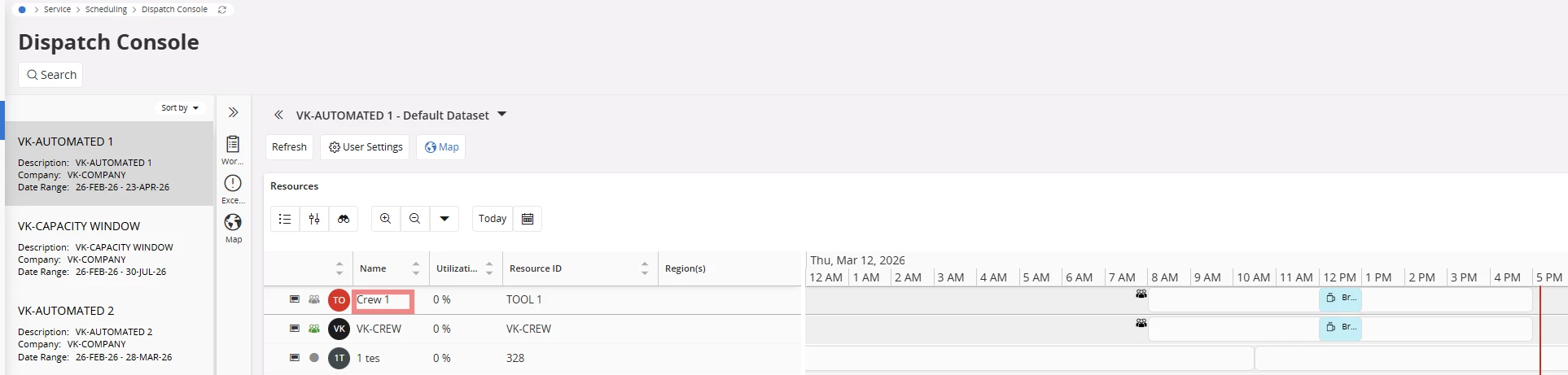 - Maintenance > Work Management > Execution > Resource Monitoring Gantt