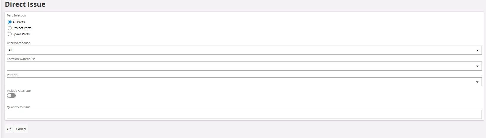 If I start by choosing the Location Warehouse I still get ALL parts in Part No, not only the ones at the location. If I start by choosing Part No I get ALL Location Warehouse, not only the ones where the part exists. I need to have them both filled in to issue the material.