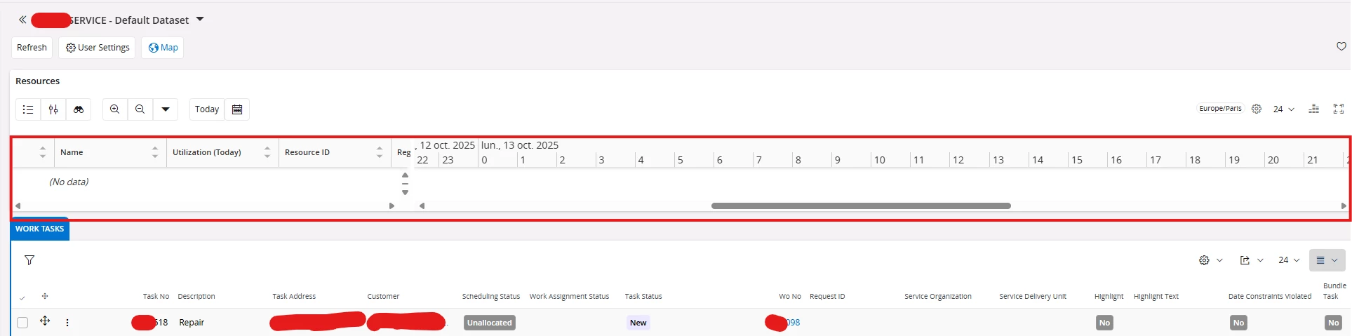 I can see the work tasks in the console, but I can't see the resources.