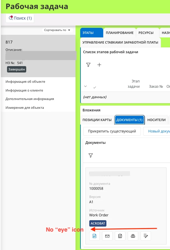 25R1. WorkTask attachment pane. User-Administrator can see and use “eye” icon in attachment pane. But regular user with administrative permissions can’t see “eye” icon. So user can’t view attached pdf file.