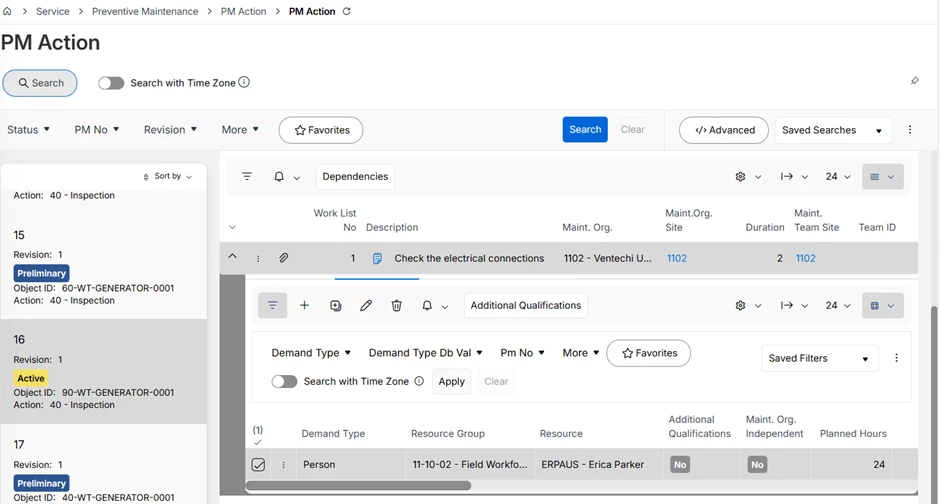 When WO created from service contract/ PM action with a resource defined with an assigned person in contract with relevant hours required,
