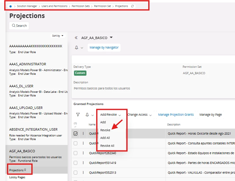 However, if you surf to Projections selector, you can revoke the projections one by one.