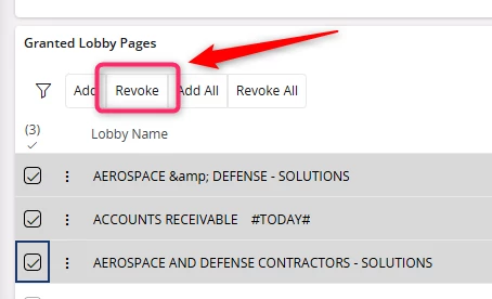 We realized that in the Permission Set screen, Lobby Pages selector there is not a button to Revoke just one of the lines that you created.