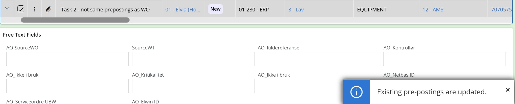 We have now noticed that when others later add a priority or updates the task with additional long description on the task the pre-postings are changed back to the values from the WO...