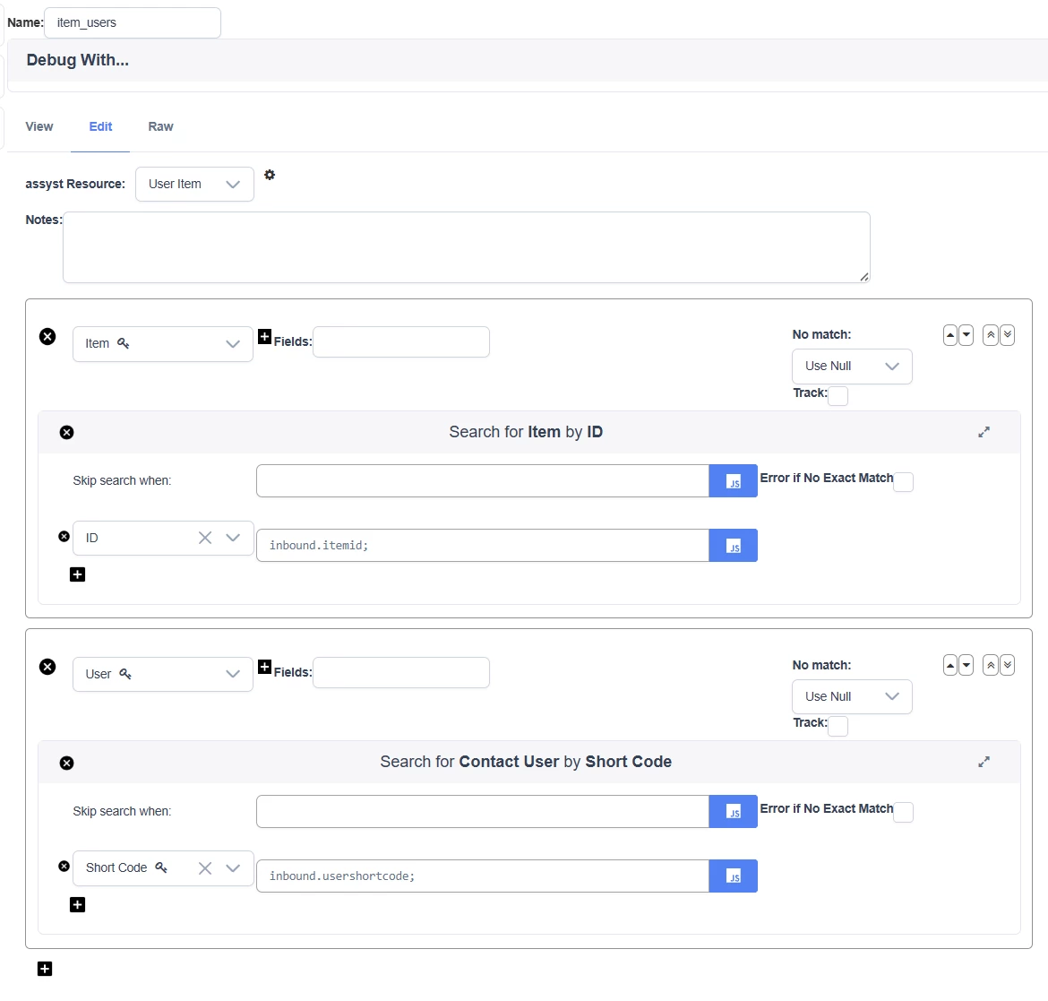 Datamapper/Channel resource should be “User Item”. Only mandatory fields here are the contact user and the item.