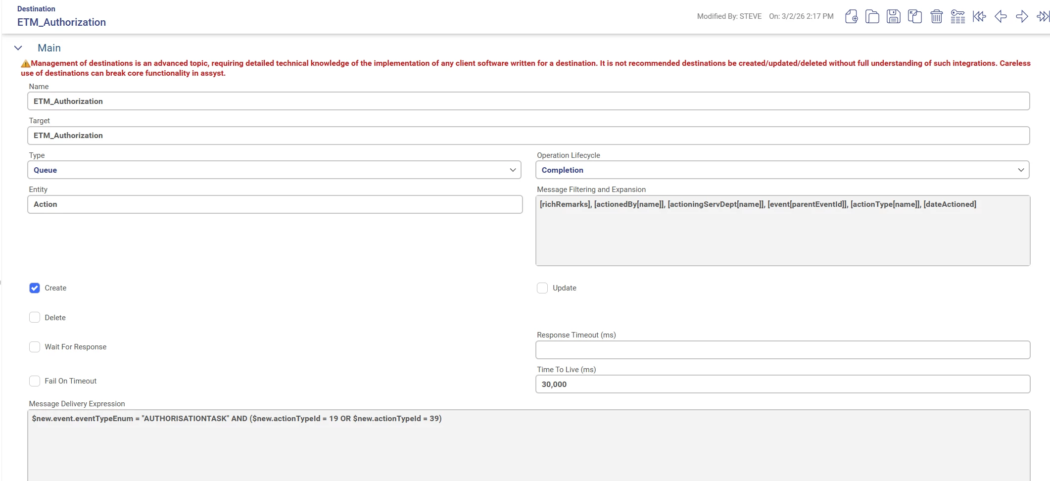 Is it possible to populate Authorization Task details to the parent event?