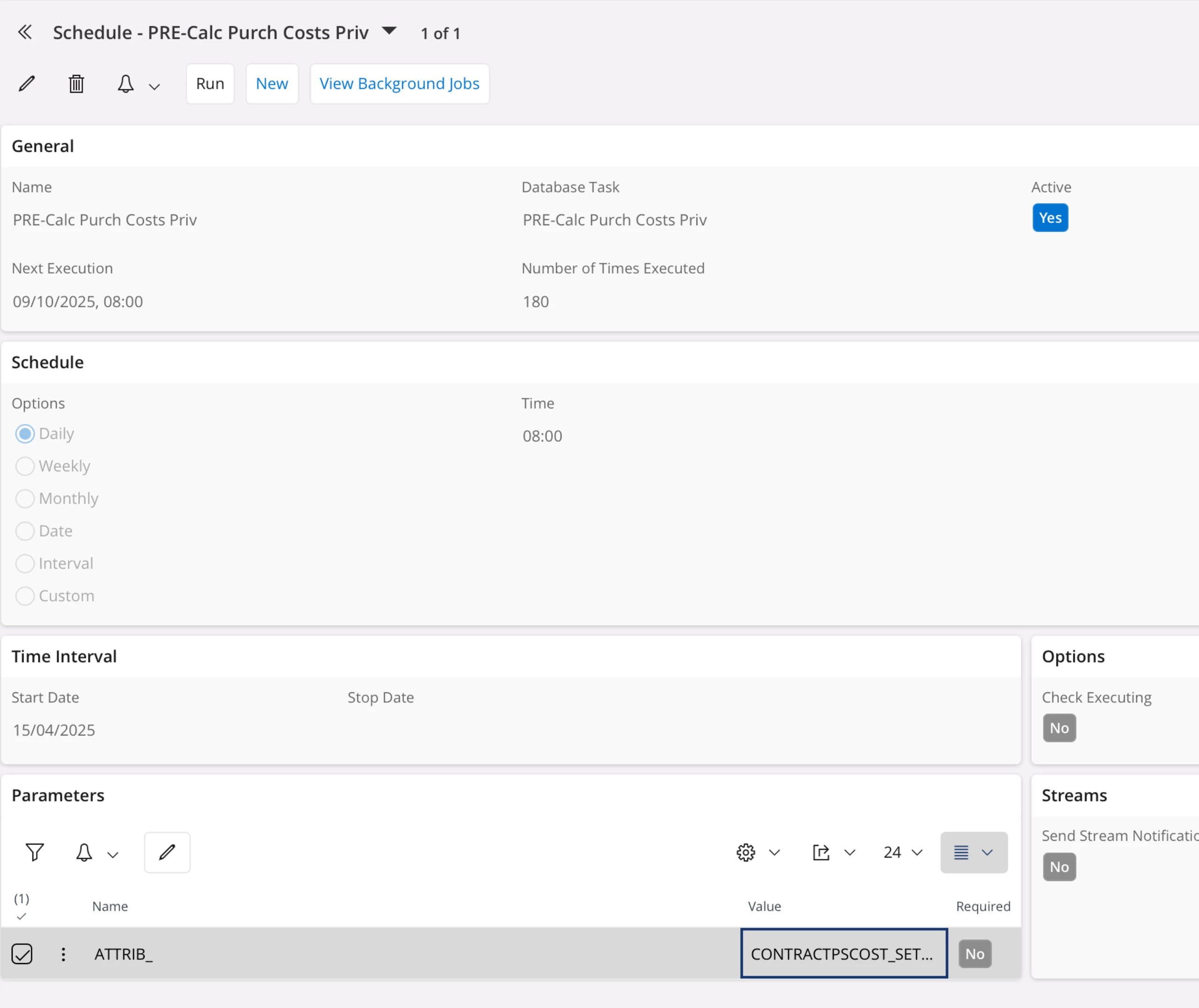 I tried to set it up, but I don’t know the syntax for ATTRIB_ parameter in IFSCloud. When I copy the argument from background job (when you run it manually), it doesn’t work.