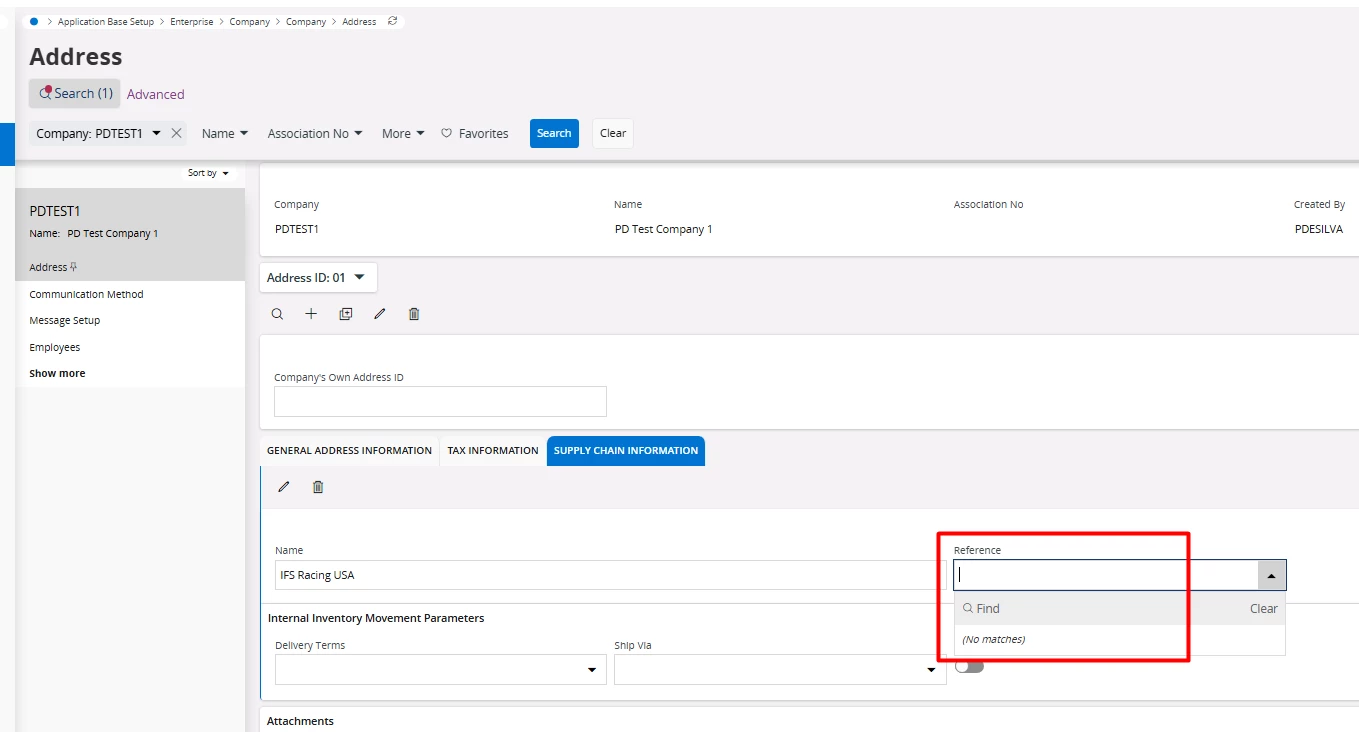 Hi ​@Chamath Kuruppuarachchi , You can add a record in ‘Communication method’ tab for address ID (01 as per above snap). Then you can add it from the dropdown of ‘reference’.
