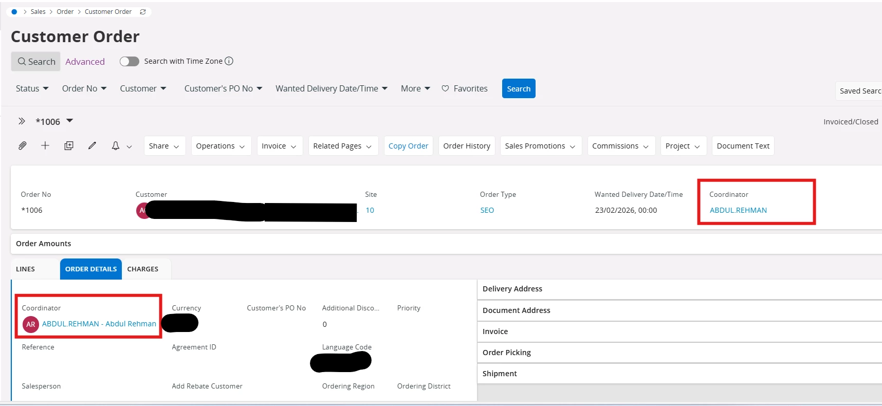 Currently, we have a dropdown field “Coordinator” located under the Group: Order Details. We would like to move this field to the main page header section for better visibility and usability.