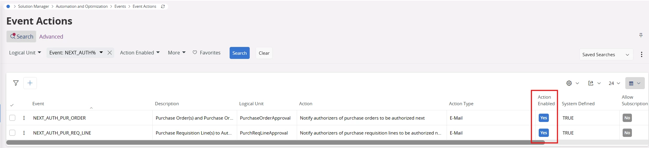 When newly created or planned purchase orders are released for approval, only the relevant approvers should receive a notification (bell icon) if the purchase order value is within the defined approval range (Minimum–Maximum) of the approval rule.