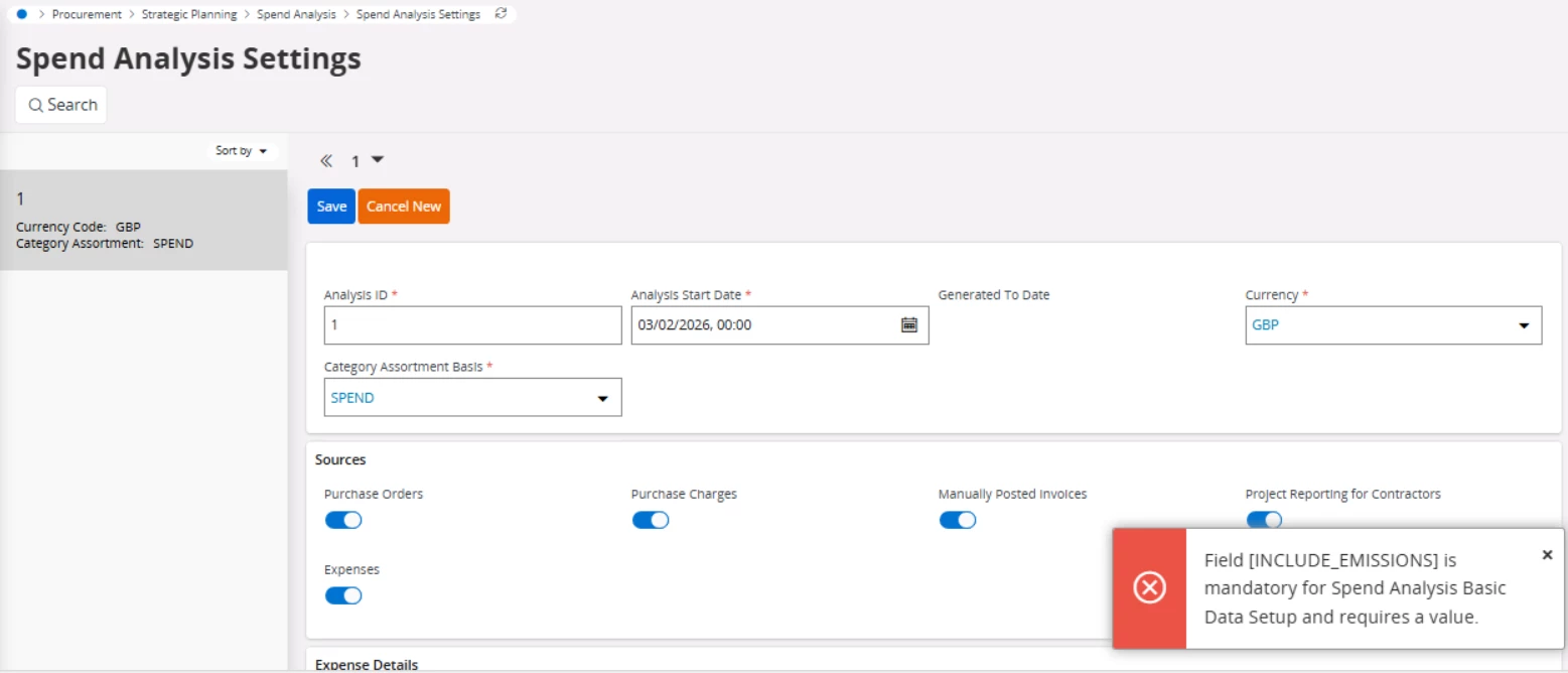 Is there a setting that I need to disable or fill any data to save the spend analysis.