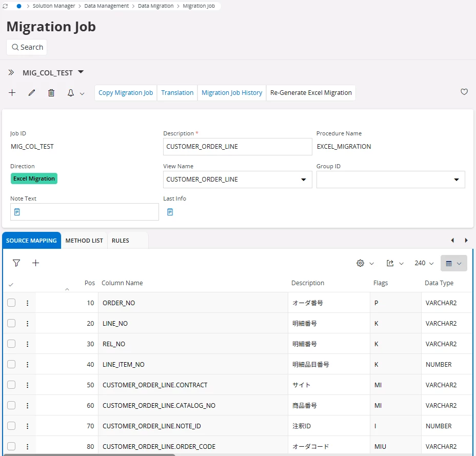 In the migration job function, I am getting the following error in EXCEL_MIGRATION for “CUSTOMER_ORDER_LINE” view.