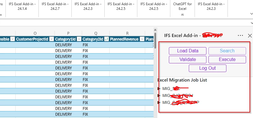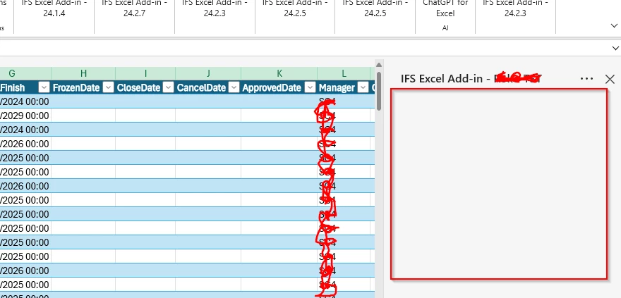 when using Excel add-in for data work with IFS - I can’t perform any functions in the spreadsheet as the buttons disappear.