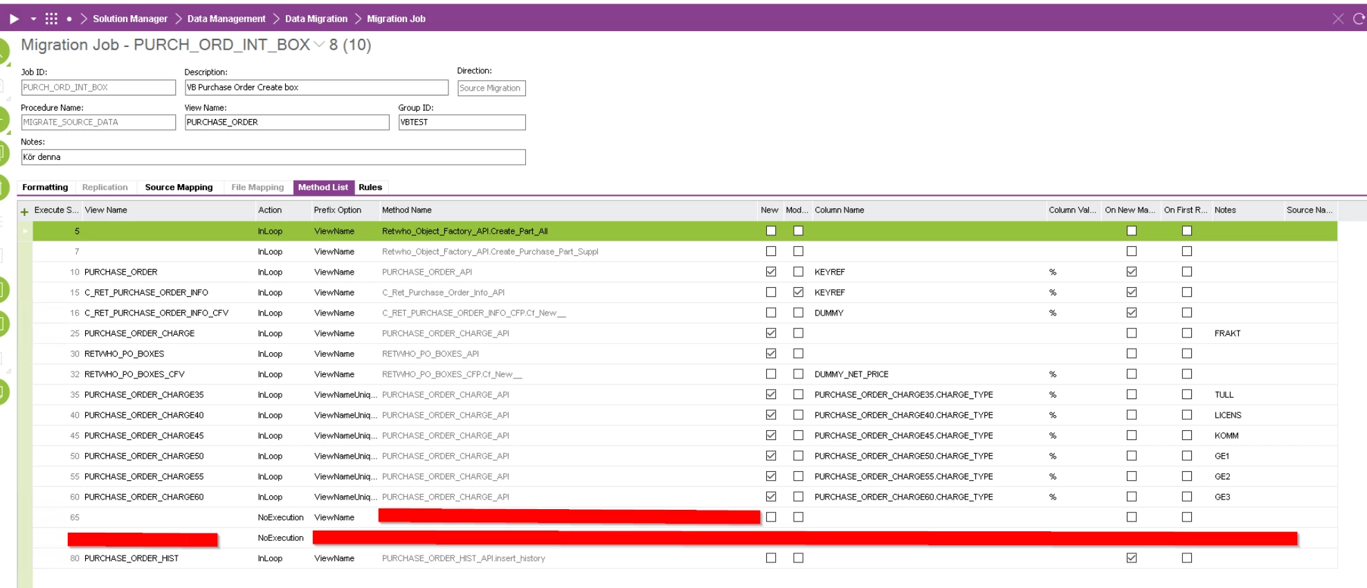 Im creating a job in app9 to read in a purchase order through migration job, which calls many methods.