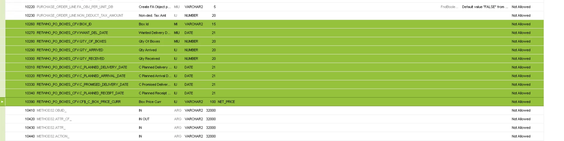 does anyone know how i can do to get around the error: ORA-01400: cannot insert NULL into ("IFSAPP"."RETWHO_PO_BOXES_CFT"."ROWKEY")? i thought the two methods for the CF’s would work exactly the same, but it does not look like it can handle the find a value for the ROWKEY?