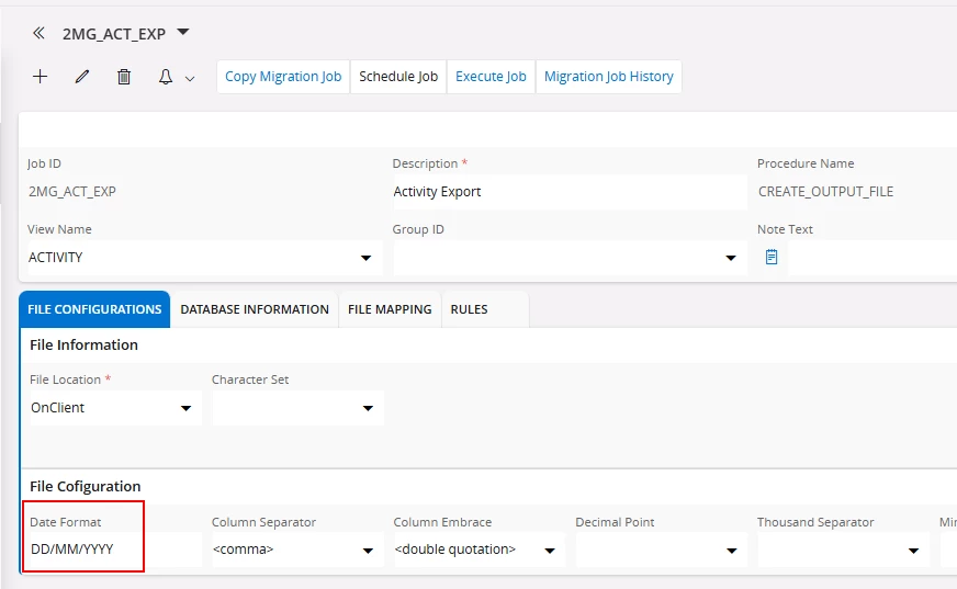 Or you may want to use a function like TO_DATE(<COLUMN_NAME>, ‘DD/MM/YYYY’) or TO_CHAR(<COLUMN_NAME>, ‘DD/MM/YYYY’) when mapping the columns in the below section
