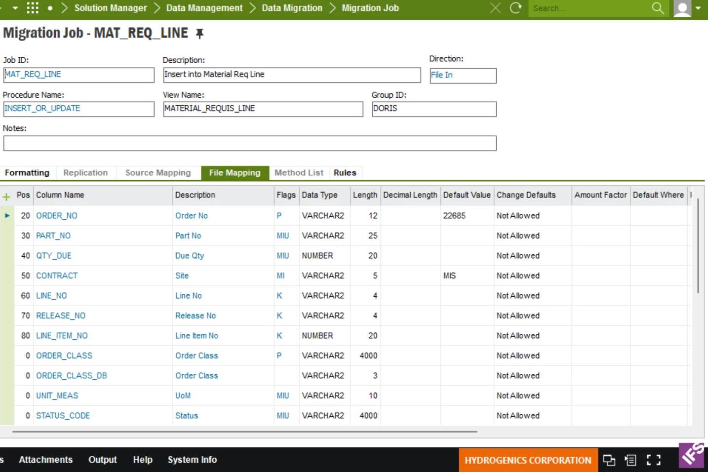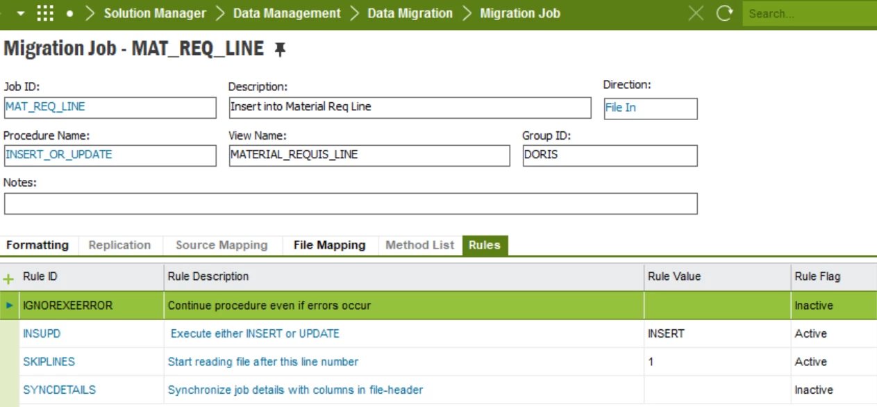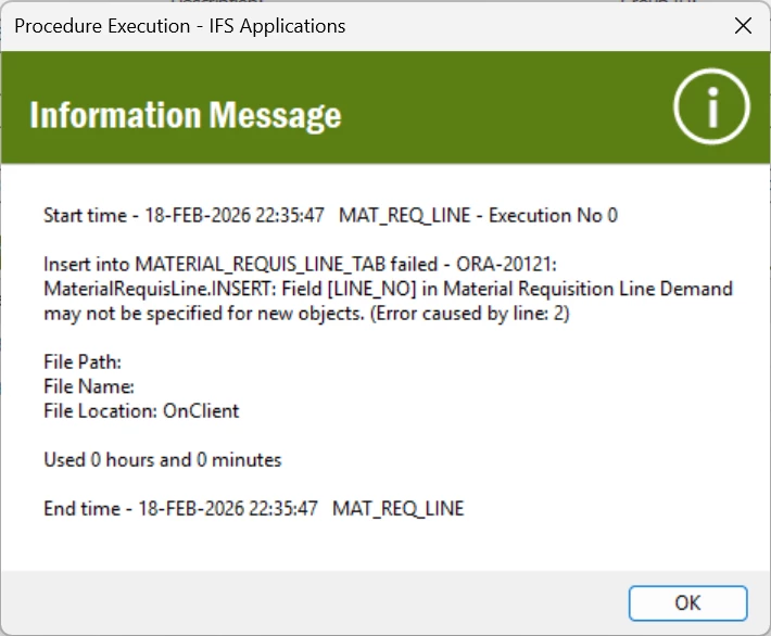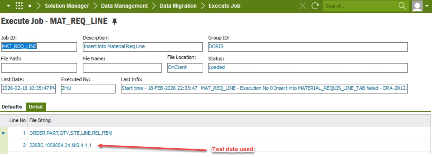 I have a migration job created to insert Material Requisition Lines, but I got below error. wondering how to fix it?