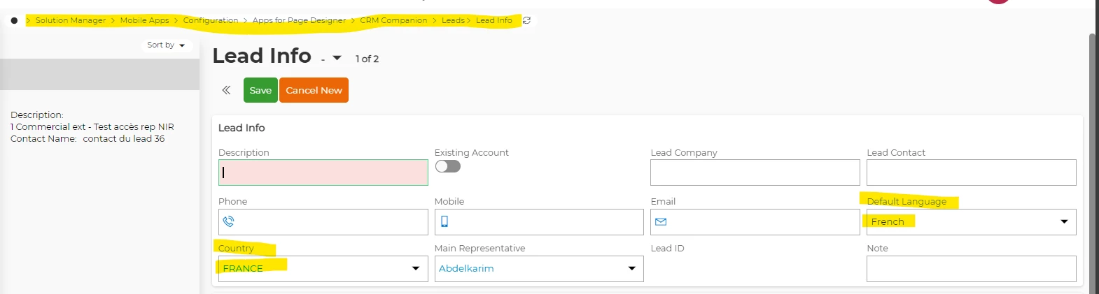 I am currently working with the IFSCRMCompanion mobile app and would like to implement a BPA that sets default values for language and country(France) when adding a Lead.