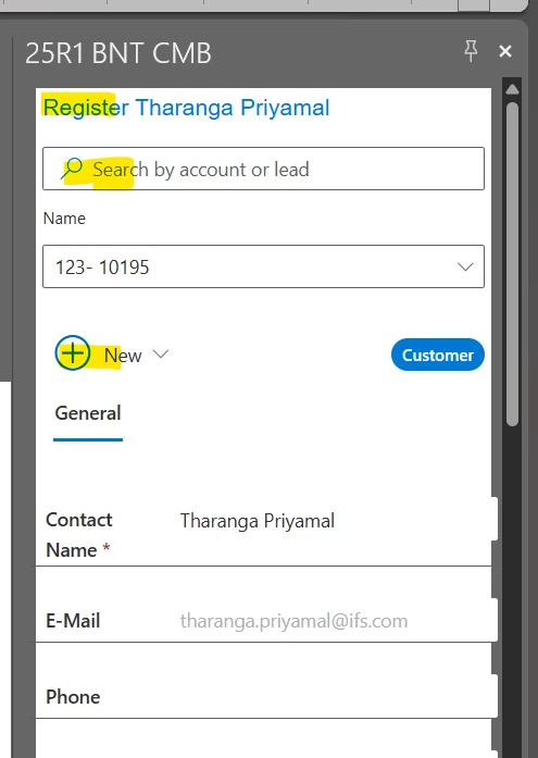 Hope this issue is given in Register Contact page which is open after clicking on plus button of a unsaved email contact. And is this happening when you select the “New” option or when you select a existing customer record?