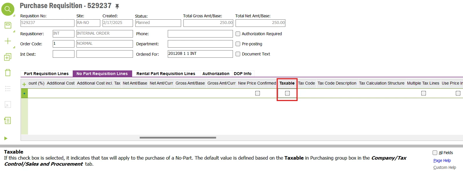 A Tax Code is required when supplier tax validation has Transaction Level selected on Company, Tax Control tab