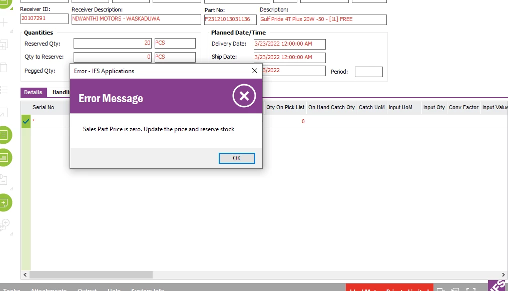 we need to invoice zero price but we can't do it error massage pop up