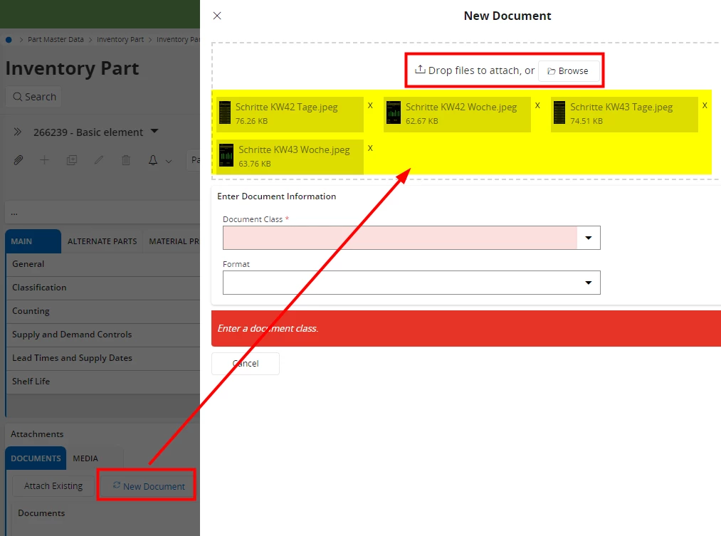 For example, I have around 100 Inventory parts, and each part has one or two documents that need to be attached. All the documents (PDF files) are in shared folder, and I am looking for a way to upload or link them in bulk to their respective parts without opening each part one by one.