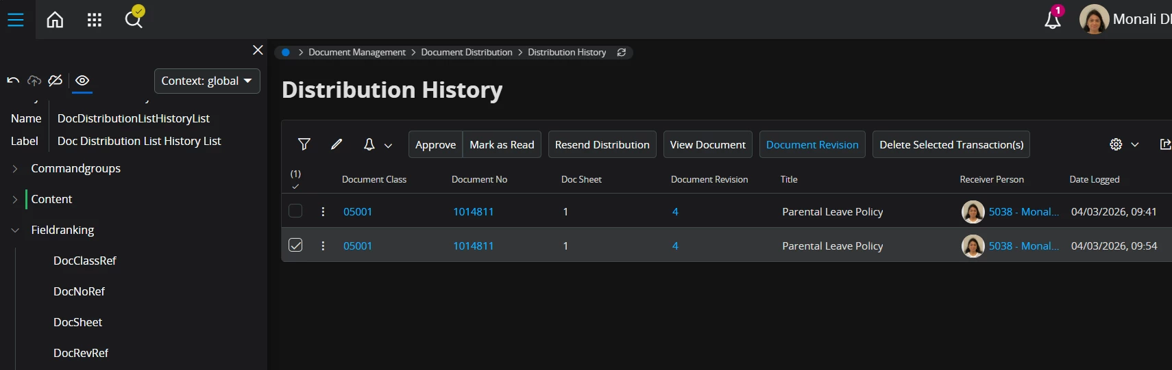 How do we know if someone has clicked Read for distributed documents in IFS 23r1?