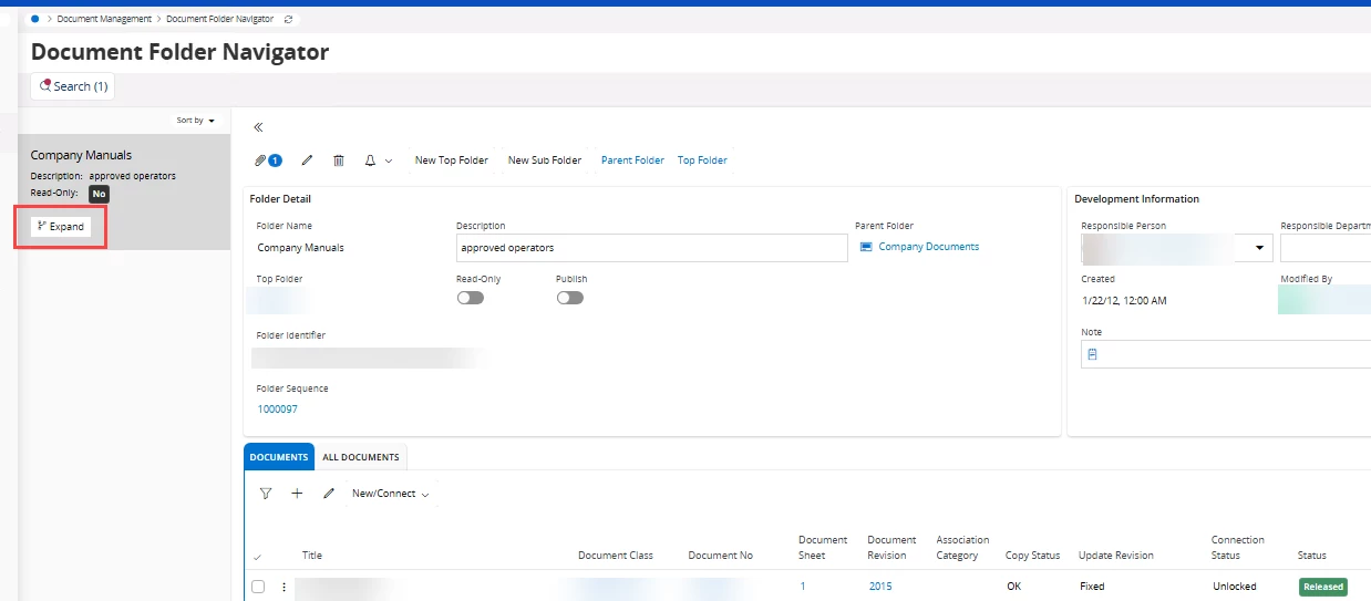 I am trying to create a lobby link element which navigates to the Document folder navigator folder, in the expanded mode.