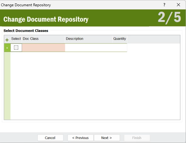 First, I selected the relevant repository IDs. However, when I clicked Next, the document classes were not listed. So, I manually entered the document class name once and also tried skipping this step.