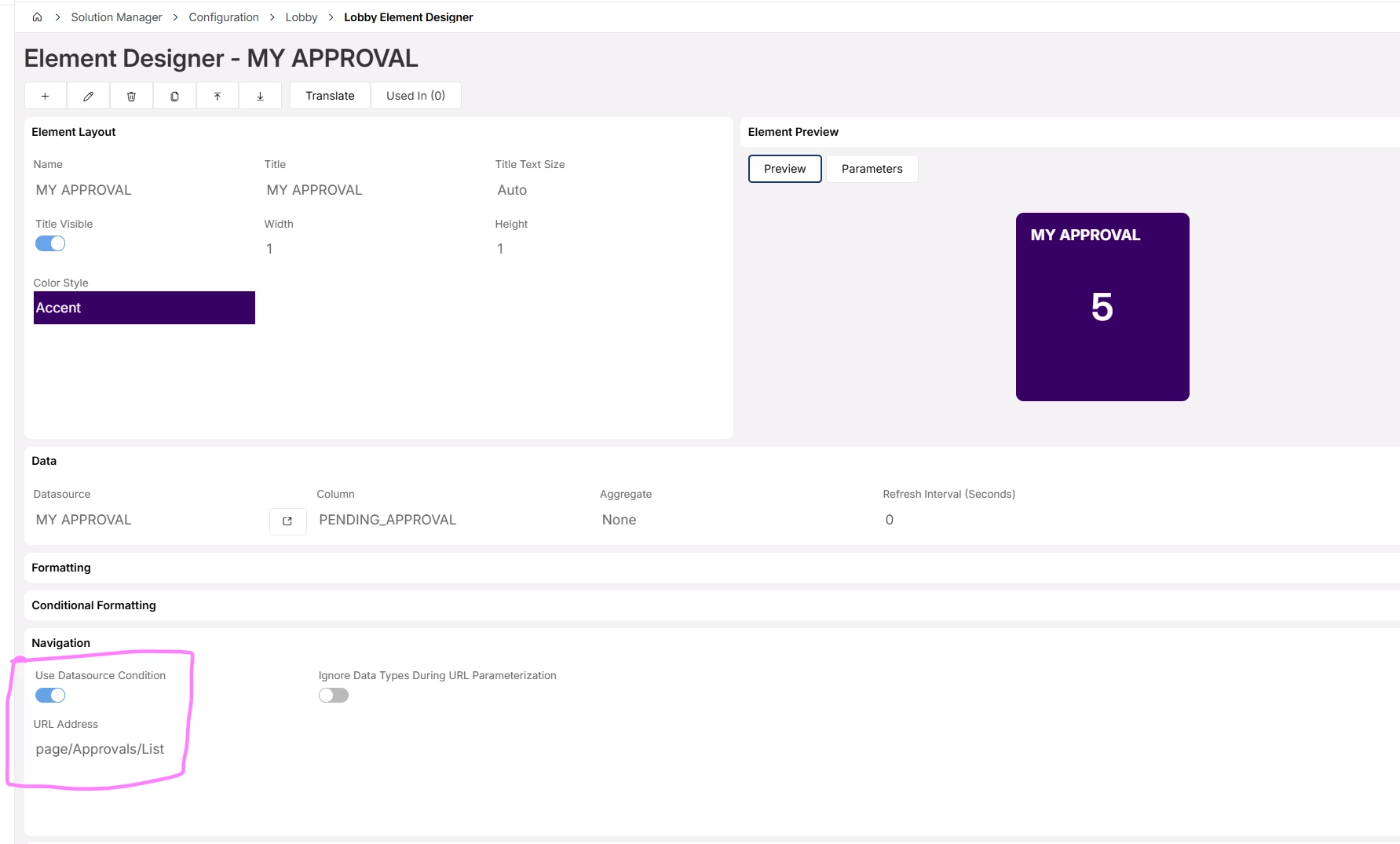 We have approvals attached to areas other than Document Management and I would like to make a lobby element for users that will show them those other approvals.