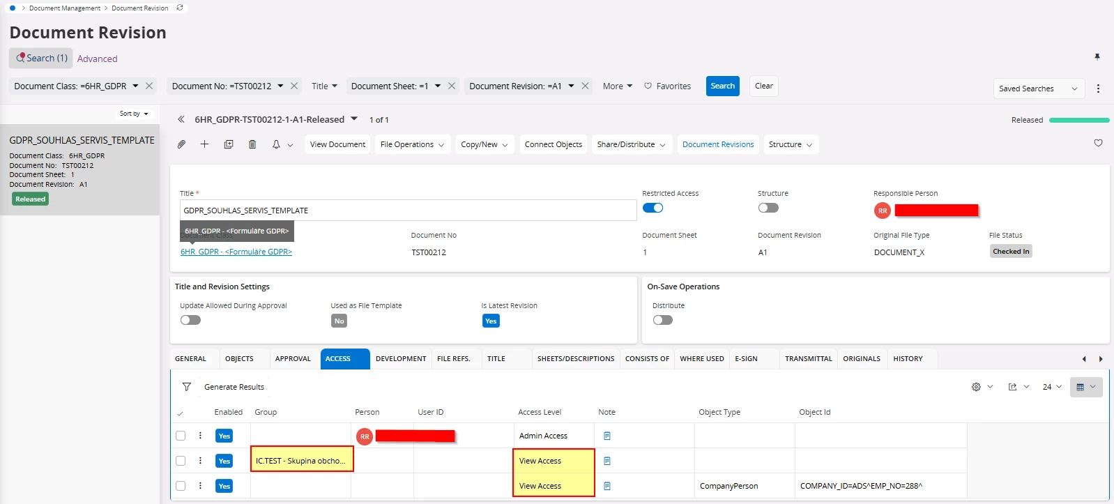 I would like to ask, how to setup few restriction to users with View access in certain Document class. I have user IC.TEST that have View Access to bellow document but he is able to do several strange actions to the document that should not be allowed.