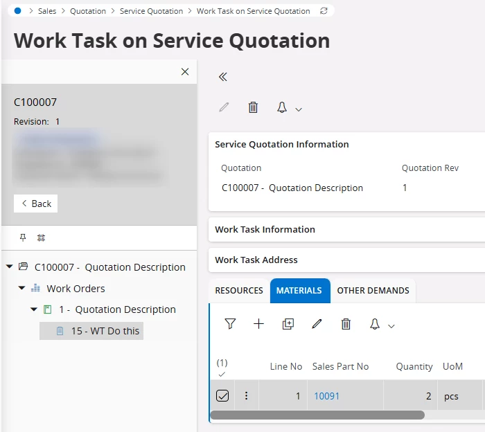 …But when making a Service quotation. I can not find any tab that show/connects charges associated with the sales part.