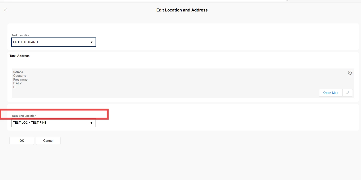 Within the Edit Address work task, I’m able to define a task end location.