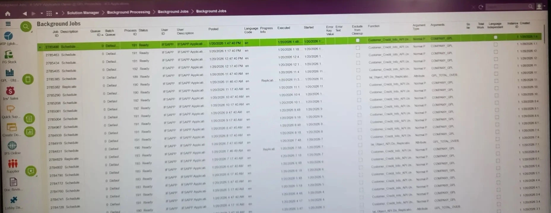 We are using IFS FSM 6.27, I want to check the executed processes by users , something like background process of IFS 10 or cloud version.