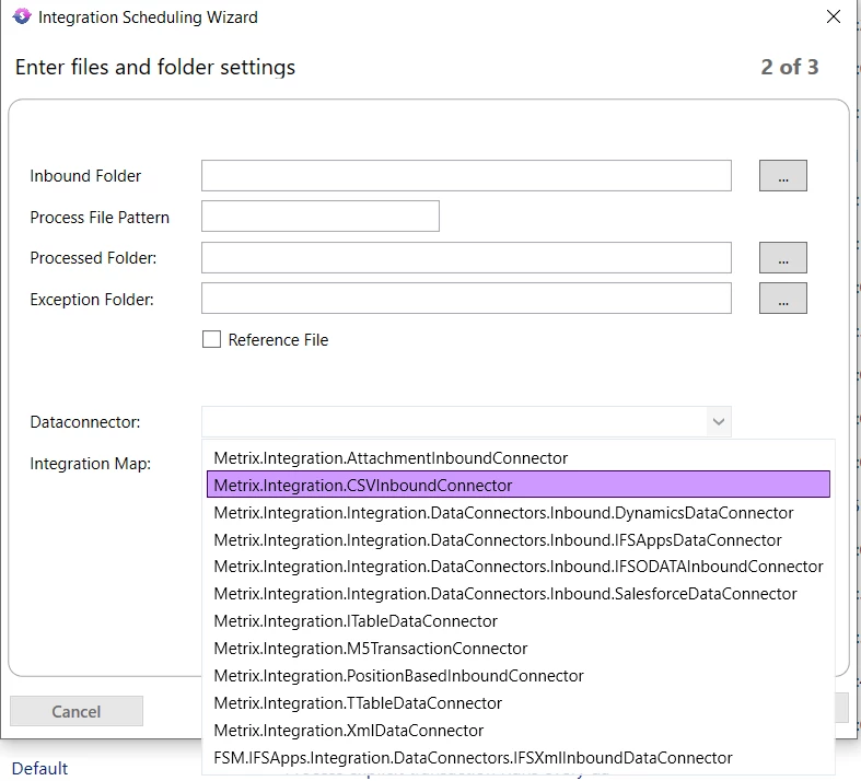We then tried using Monitor Schedules with the Process File option. However, on the Data Connectors screen, we can only see the csvinbound connector and it seems it is only for inbound integrations.