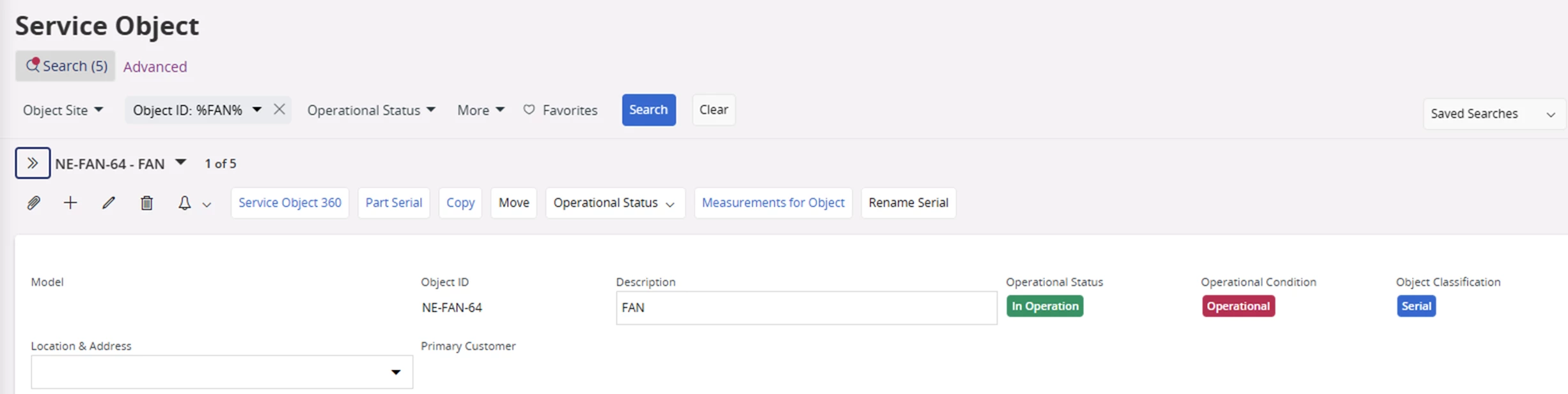 Service management > Installed base> Service object