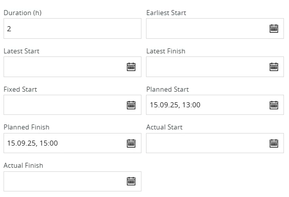 Set earliestStart to 11:00, LatestStart to 15:00, LatestFinish to 17:00 on the same day.