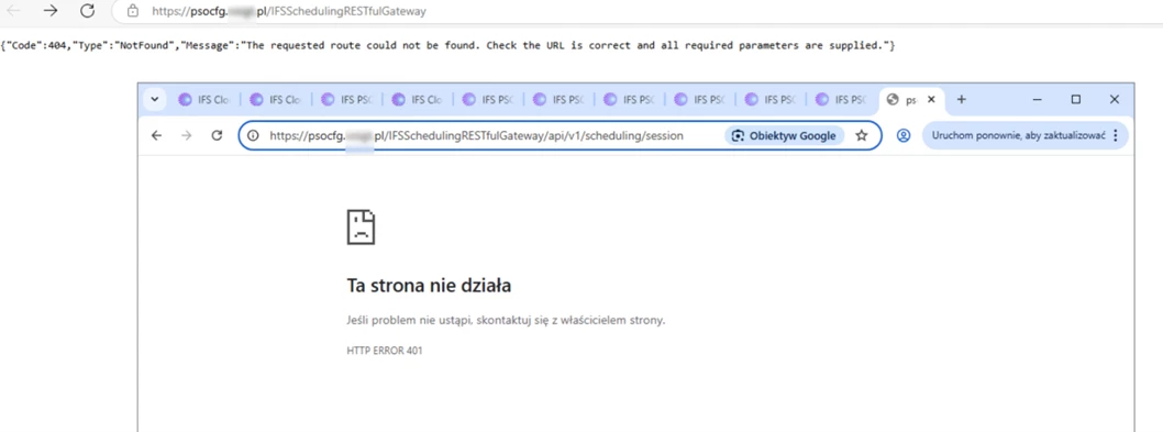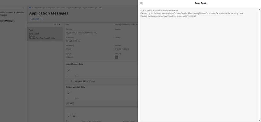 When testing the connection in IFS Cloud (24R2) to PSO (24R2), it keeps failing. Upon initial configuration, the following error appeared.