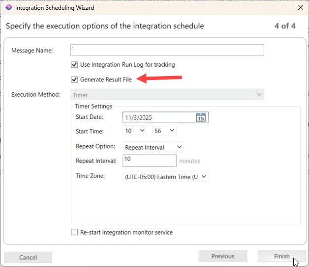 When creating an integration schedule, there is an option to ‘Generate Result File’. If this process is being executed by a system integration user account (in our case ‘INT_ADMIN’), where does this result file go and from where would we be able to retrieve it?