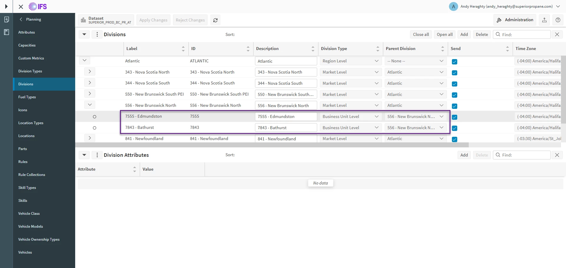 Some are populated while others are not. I cannot find any differences in the creation or setup of these regions in the divisions menu.