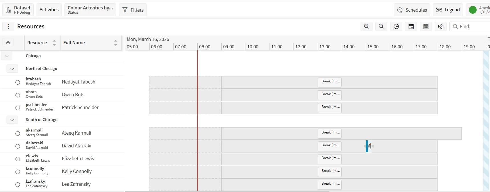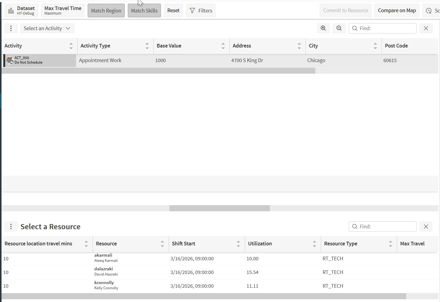 I created an activity that matches 3 of my resources (in fact you can also see its already scheduled above to 1 of them):