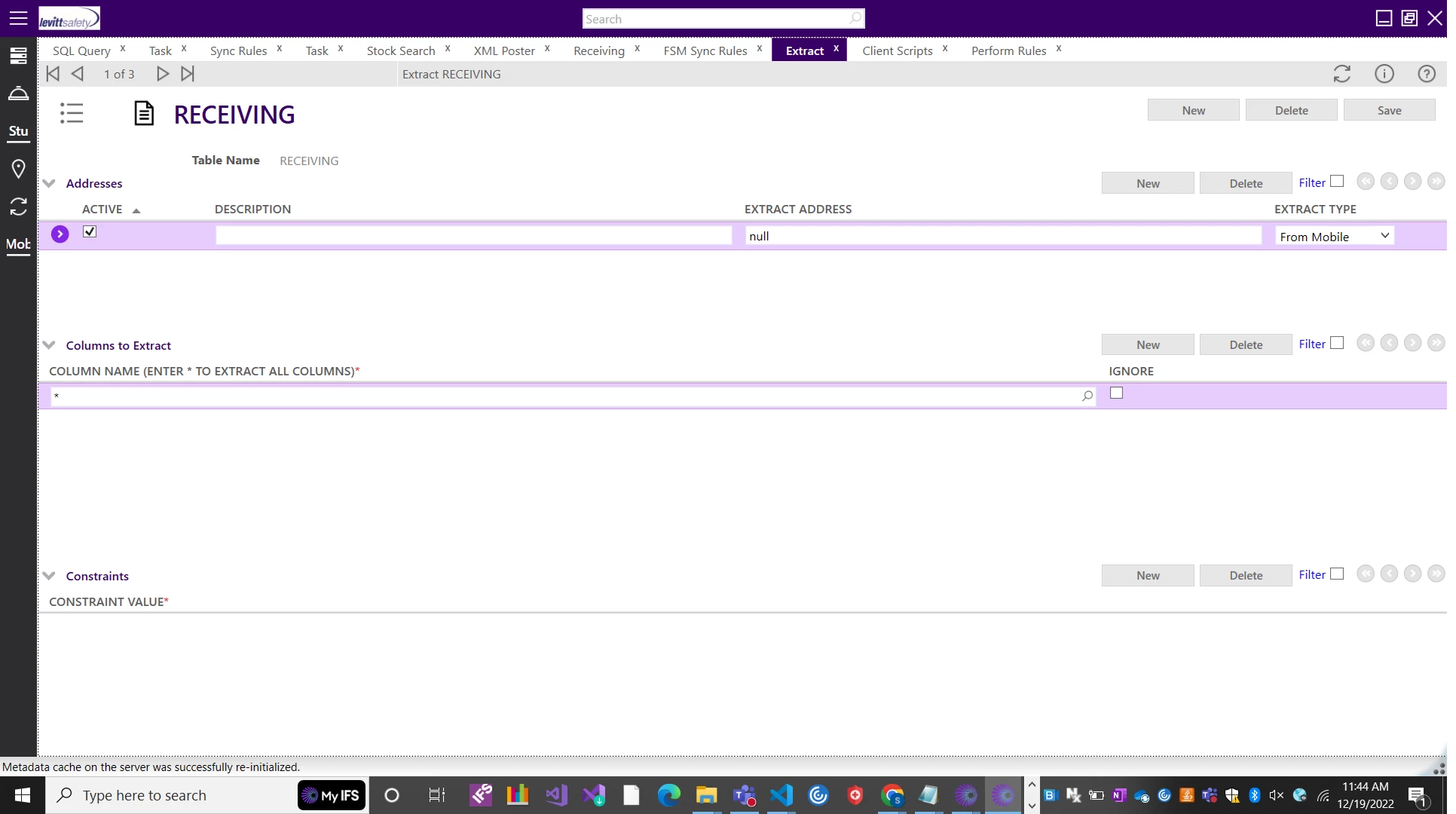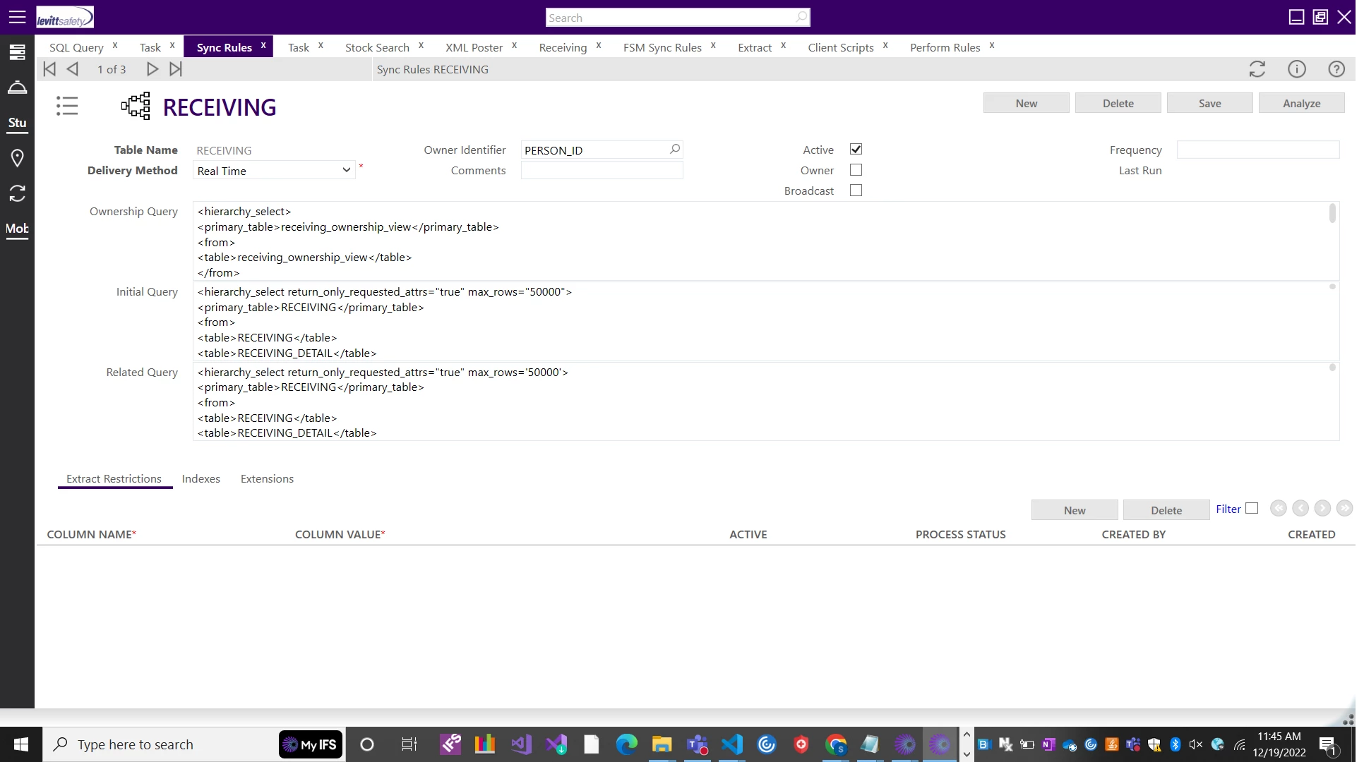 I have removed some extract restrictions I had previously for the Extract for the RECEIVING table and am getting all the columns for Receiving.