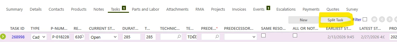 'SAVE' Pop Up while Trying to Split a Task in FSM