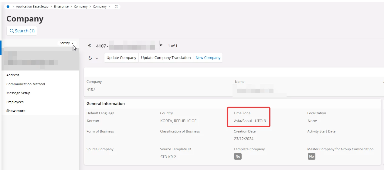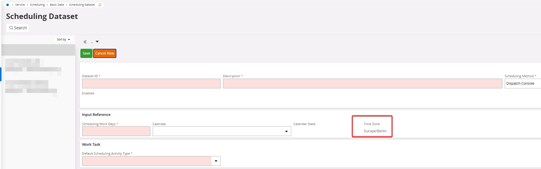I have a Company and Service Organization set up with a certain time zone, but the Scheduling Dataset does not have the same time zone and I cant change it in the creation of a Scheduling Dataset.