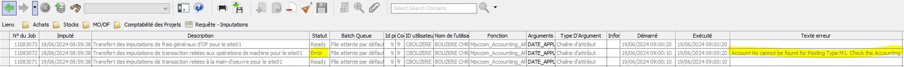 We are in the 7.5 version, I found the error at mentionned in the screenshot for the posting M1 “Account N cannot be found”. I used the Default values for the posting in order to check if it comes from a previous bad setup of the M1 posting.