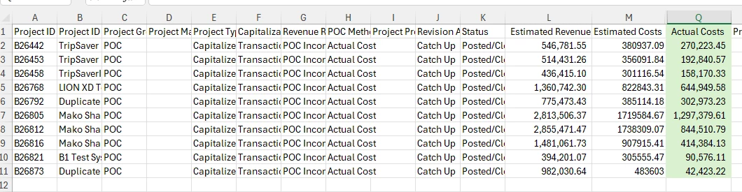 We ran revenue recognition which indicates the actual costs of projects. For example below. Is there a way to find the cost detail that exactly makes up the actual costs in the revenue recognition? Would appreciate any help or guidance.